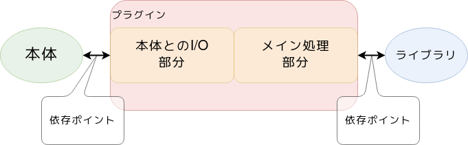 本体の実質的な役割が、「プラグインが行う処理をハンドリングすること」になっているもの