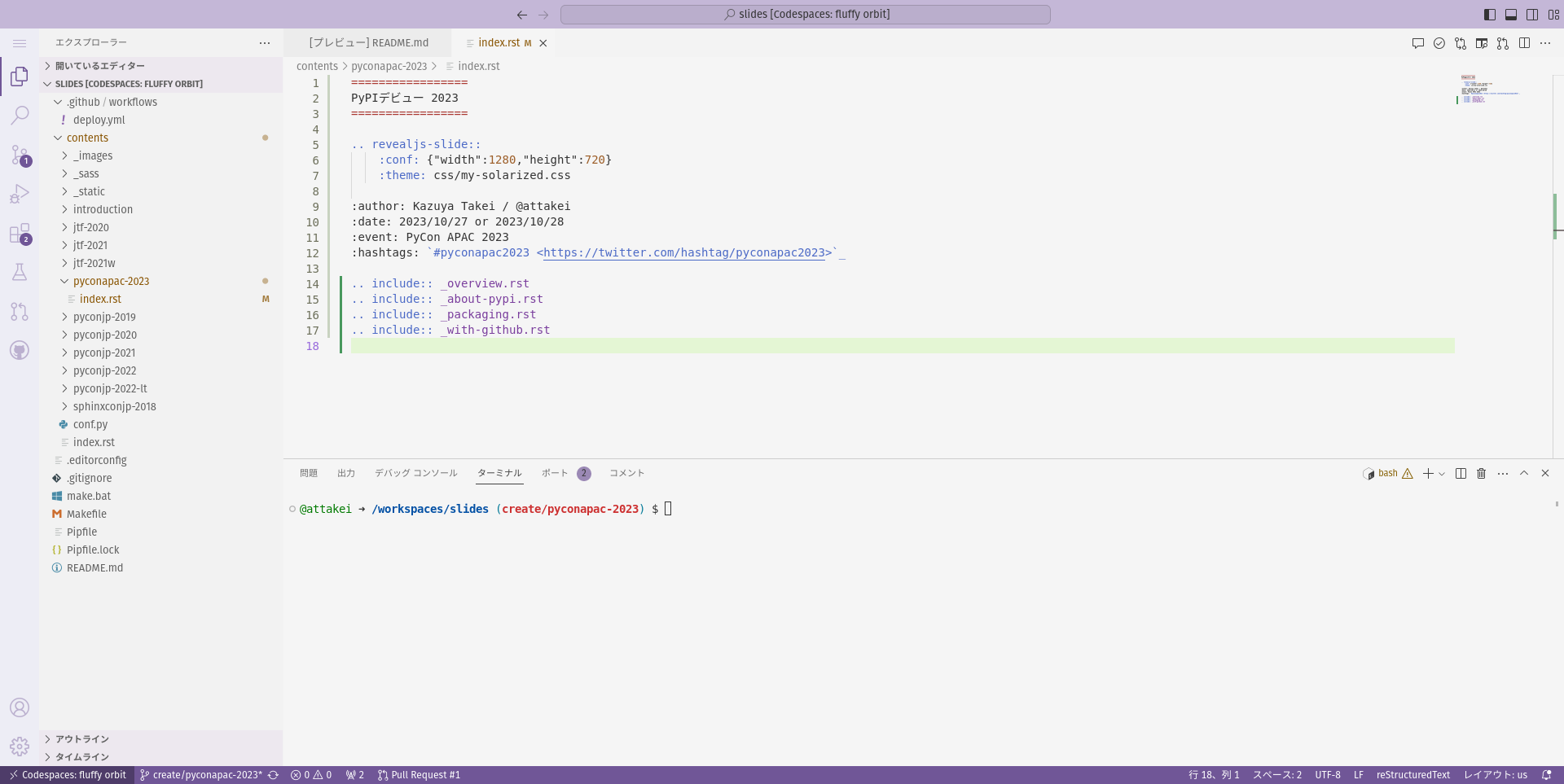 この時点までに、PyPIのアカウントを作成する必要あり。